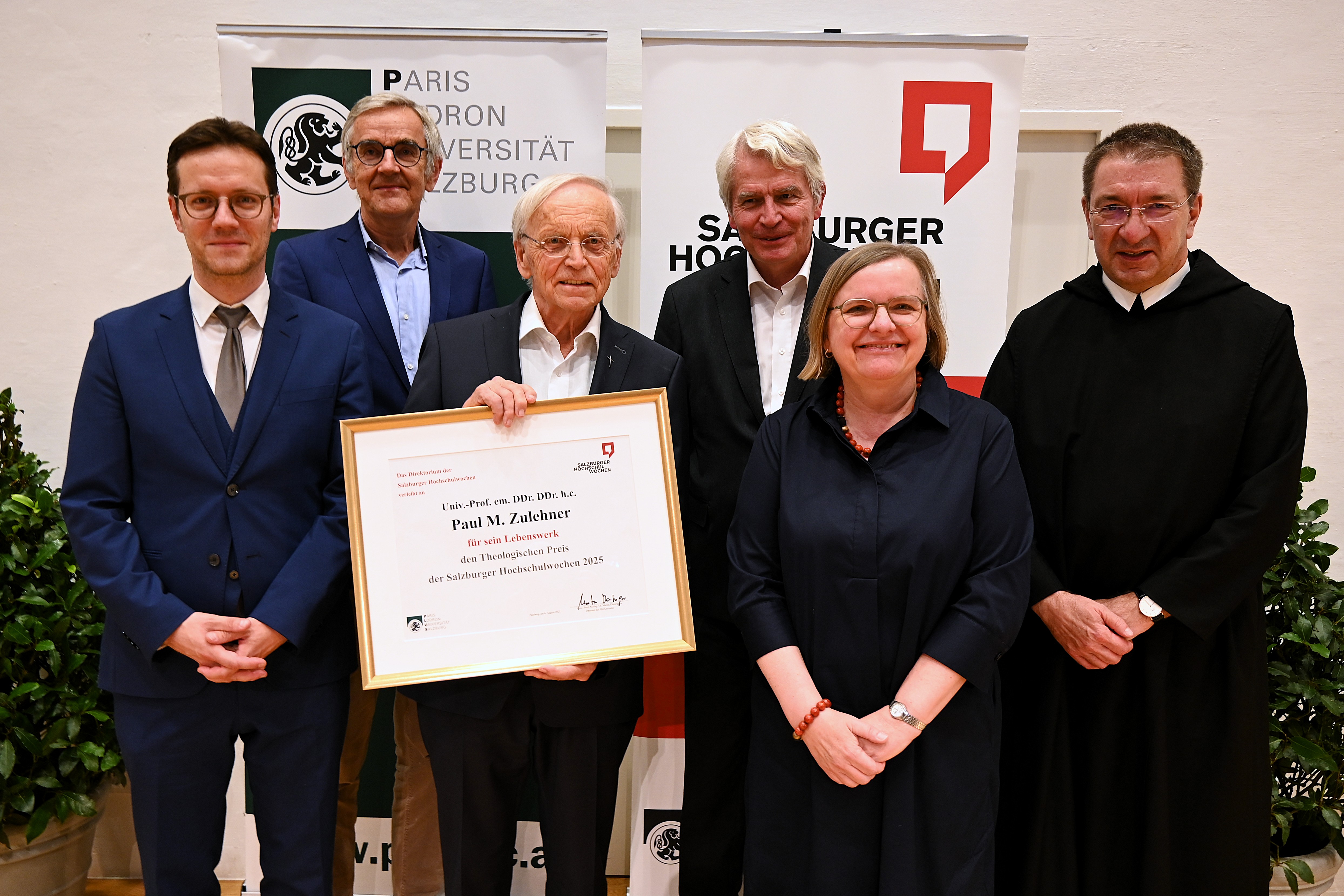 Salzburg, 07.08.2025 (KAP) Der bekannte österreichische Pastoraltheologe Prof. Paul M. Zulehner ist mit dem "Theologischen Preis" der Salzburger Hochschulwochen für sein Lebenswerk ausgezeichnet worden. Zulehner erhielt den mit 5.000 Euro dotierten Preis am Mittwochabend in Salzburg. Zulehner sei als Theologe wie als "theologischer public intellectual" ein "Glücksfall und eine Ausnahmeerscheinung", heißt es in der Jury-Begründung, aus der der Obmann der Hochschulwochen, Prof. Martin Dürnberger, bei der Verleihung zitierte. Zulehner sei eine Art "theologischer One Man Think Tank", so Dürnberger, und durch sein wissenschaftliches Werk und seine mediale Vermittlungskunst zu einer "eigenen Marke in Zivilgesellschaft und Kirche" geworden.